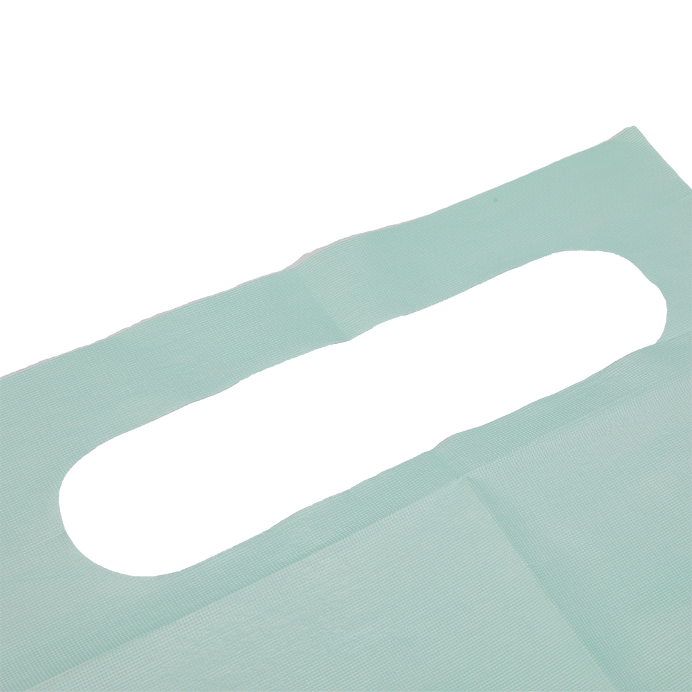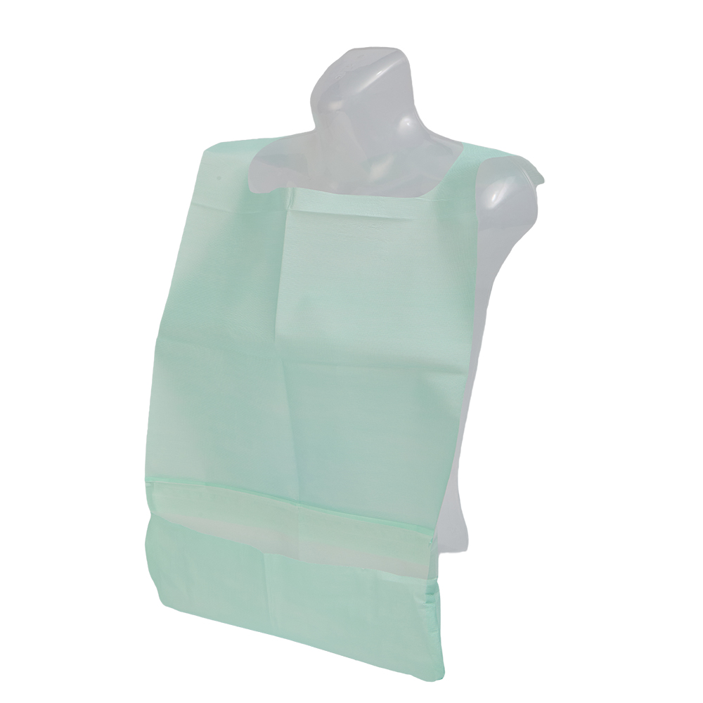 مريلة للبالغين للاستخدام مرة واحدة مع جيب - ورق مقاوم للماء مع مادة البولي إيثيلين.