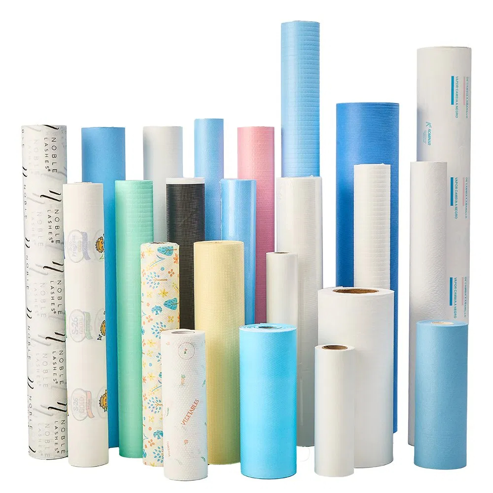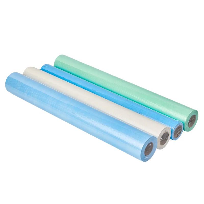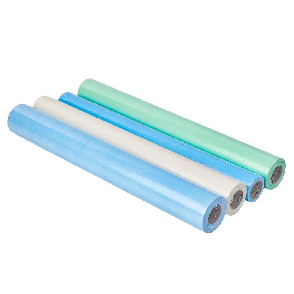 المادة: ورق + غشاء البولي إيثيلين - مما يضمن أن تكون لفائف ملاءات السرير الطبية المطلية بالبولي إيثيلين مقاومة للماء والزيوت.