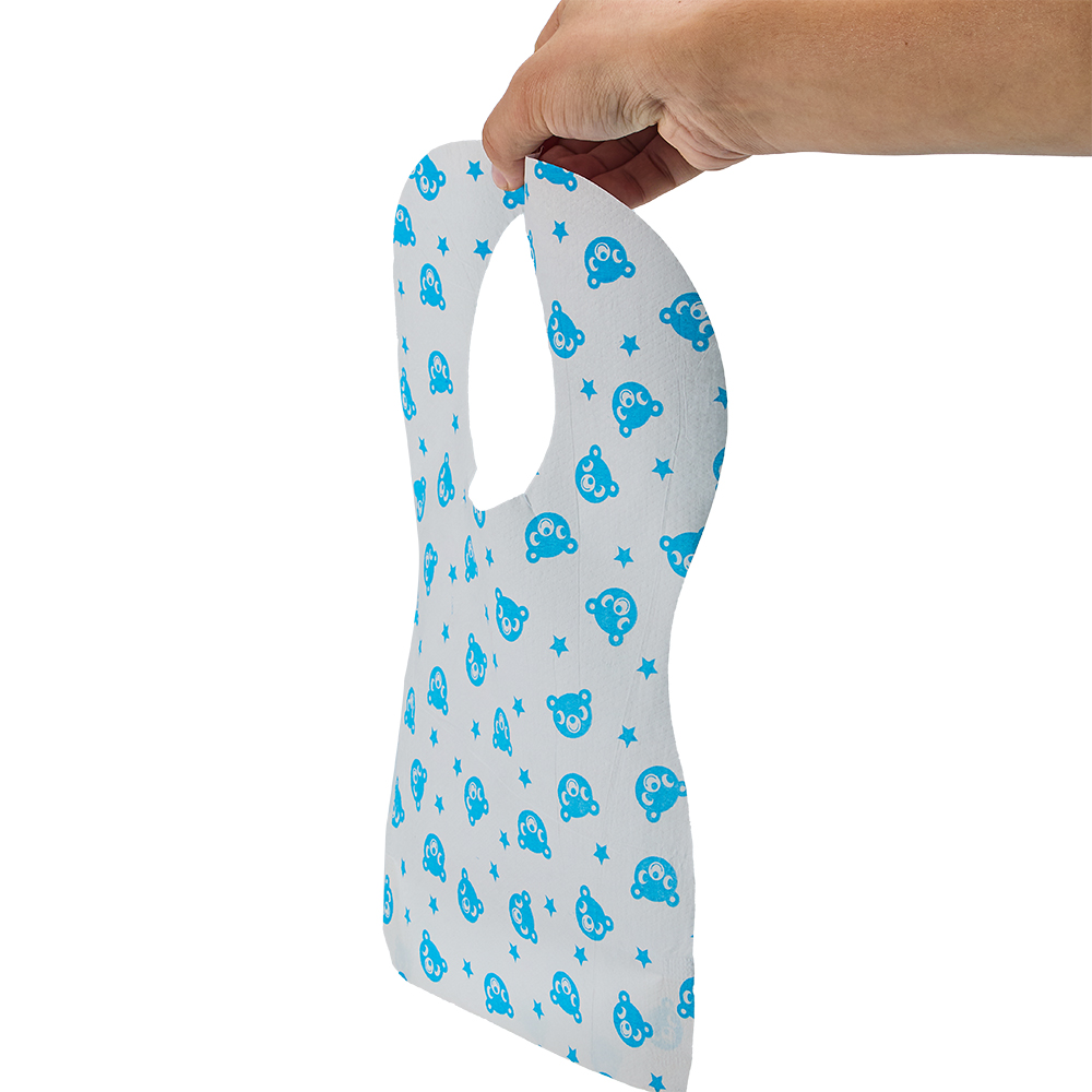 ج: مرايل التغذية التي نستخدمها هي مرايل مغلفة بالورق والبولي إيثيلين - يوفر الورق نعومة بينما يخلق فيلم البولي إيثيلين حاجزًا موثوقًا به مقاومًا للماء والزيت للاستخدام مرة واحدة.