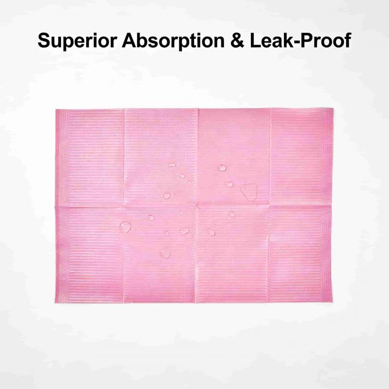 مصنوع من طبقة واحدة من الورق الماص وطبقة واحدة من غشاء البولي إيثيلين، مما يحقق توازناً بين الامتصاص وأداء منع التسرب لتوفير حماية فعالة.