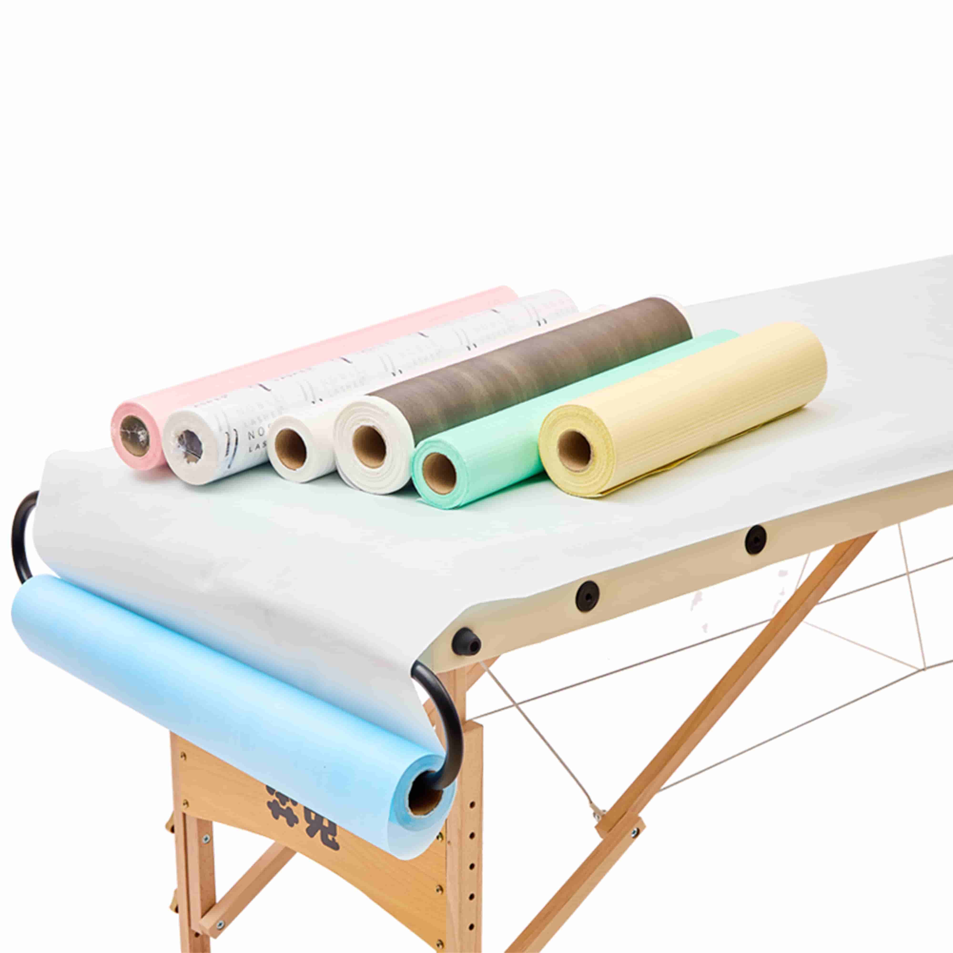 مادة مركبة من الورق وغشاء البولي إيثيلين: تعتمد على ورق طبي عالي الجودة وهيكل مركب من غشاء البولي إيثيلين، وهو ناعم ولطيف على البشرة وقابل للتهوية مع أداء ممتاز في مقاومة الماء والزيوت، مما يعزل البقع والسوائل بشكل فعال، ويحافظ على السطح نظيفًا ومرتبًا.